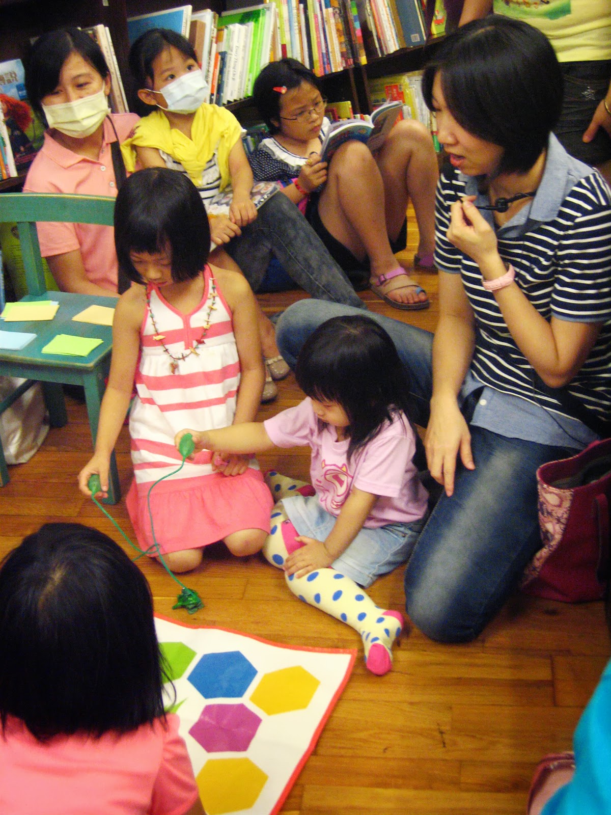 以「哈囉歌」開場和孩子拉近距離,有幾位上個月也有來聽